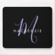 Mousepad Monograma de Script de Lavanda Negra Moderno Elega
