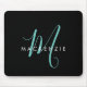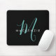 Mousepad Monograma de Script Teal Negro Moderno Elegante