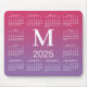 O mouse pad do na moda calendário apresenta um monograma personalizado arrojado acima do ano, no meio, rodeado por um calendário branco de 2025 em um gradiente rosa-escuro a roxo. Adicione a sua inicial na barra lateral. Copyright ©Claire E. Skinner. Todos os direitos reservados.
