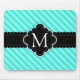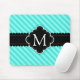 Teste padrão diagonal azul das listras do aqua moderno com design preto à moda do quadro da bandeira no meio para sua inicial personalizada do monograma.