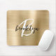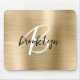 Este elegante mouse personalizado apresenta um monograma e primeiro nome em modernos roteiros preto e branco em um fundo de metal embebido em ouro.