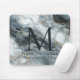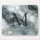 Mousepad Monograma Elegante Cinza Azul Mármore Preto