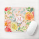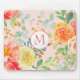Este elegante tapete de rato apresenta um design de padrão floral de aquarela com rosas, eucalipto, folhagem, falso brilho e um monograma. Personalize-o com uma inicial.