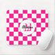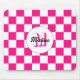 Quadrados marcados com retro branco rosa-quente, retro Monograma Pad do Rato. Prados cheios de pratos geométricos cor-de-rosa quente presentes para ela. Legal padrão quadrado geométrico verificado por retrô. Verificador moderno branco e rosa quente do azulejo Vintage. Personalize com seu nome e inicial personalizados.