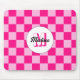 Quadrados marcados com rosa claro rosa quente retrorreflector Monograma do mouse Pad. Prados cheios de pratos geométricos cor-de-rosa quente presentes para ela. Legal padrão quadrado geométrico verificado por retrô. Verificador moderno rosa-quente do azulejo Vintage. Personalize com seu nome e inicial personalizados.
