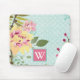 Mousepad Monograma | Jardim Floral, Fundo Azul