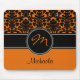 Este moderno e moderno monograma queimado laranja, preto e branco, mousepad de cor damasco, tem caixas de modelo para personalizar com seu próprio nome, iniciais, monograma ou outro texto. Se precisar de ajuda para personalizar este painel do mouse, envie um e-mail para niteowlstudio@gmail.com.