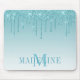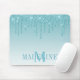 O moderno Elegante, modesto e moderno Pad do Mouse Azul-Glitter Aqua Aqua personalizado com o seu Monograma Inicial e Nome. Coloque brilho com faíscas.