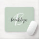Este elegante mousepad personalizado apresenta um monograma e primeiro nome em script moderno preto e branco sobre um fundo verde sage trendy.