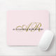 Tchico feminino elegante e refinado personalizável, personalizável com monograma, letras iniciais e mousepad de nome. Fundo cor-de-rosa pincelado de na moda suave, script elegante de caligrafia dourada, letras iniciais manuscritas e tipografia negra clássica para o nome. Bonita e eterno, para você ou como um presente personalizado atencioso para ela. Computador útil ou acessório de laptop e muito barato, um presente abaixo de 50 dólares, mesmo abaixo de 20 dólares.