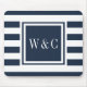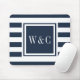 Mousepad Monograma Personalizado Azul Marinho Faixa Branca