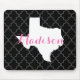 Celebre seu estado natal do Texas com um mouse personalizado de monograma preto quatrefoil de tendências quatrefoil. Um presente perfeito para dar para o Natal, aniversários, formandos, casamentos e você mesmo! Altere o estilo da fonte, adicione imagens e muito mais clicando no botão "Personalizar".