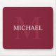 Mousepad Monograma Personalizado e Nome Vermelho Borgonha