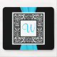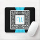 Este mousepad azul-aqua, preto e branco monograma com fita IMPRESSA pode ser personalizado com seu próprio nome, monograma ou outro texto.