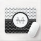Dê a seu escritório pessoal um olhar contemporâneo feminino com este mousepad preto e branco na moda com um teste padrão de bolinhas do círculo da modificação. Toda a menina moderna amaria ter sua inicial do nome e do monograma personalizada neste design formal e moderno.