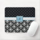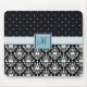 Mousepad Monograma Preto e Branco em Damasco e Bolinhas