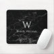Mousepad Monograma Preto Mármore Branco Nome Moderno Elegan