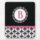 Este mousepad monograma cintilante apresenta um design preto, rosa quente e pulgão branca de lis, e o texto inicial ou de sua escolha.