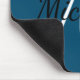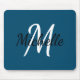 Mouse pad com um fundo azul simples e profundo e um monograma personalizado mínimo preto e branco, primeiro nome e primeiro nome