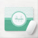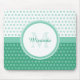 Dê a seu estilo pessoal um olhar contemporâneo feminino com este mousepad verde e branco na moda com um teste padrão de bolinhas do círculo da modificação. Toda a menina moderna amaria ter sua inicial do nome e do monograma personalizada neste design formal e moderno.