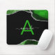 Mousepad Monogrammed Green Agate with Silver Glitter Accent