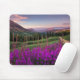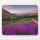 Esta foto caracteriza wildflowers avermelhado-roxos do fireweed em um ajuste da montanha no nascer do sol.