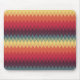 Esta imagem é um padrão geométrico vibrante constituído por formas de diamante sobrepostas (ou rhombus) dispostas em bandas horizontais. As cores se misturam suavemente de amarelos quentes no topo, através de laranjas e vermelhos ferozes, até legal chaleiras e azuis no fundo, criando um efeito linear de gradação sem soldadura. Os repetidos motivos zigue-zague e diamante dão-lhe um apelo visual dinâmico e ritmado, que lembra os tecidos ou a arte retro-gráfica.