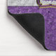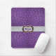 Pasta de rato de mulheres adorável, com gráficos de um aspecto de couro de avestruz roxo e colorido. Uma banda leve de couro de avestruz de cinza, se estende pelo meio e é decorada com um tom de ouro e uma fivela de ametista. O texto roxo, dentro da fivela, está pronto para personalizar. Maneira chique de vestir sua mesa, em casa ou no escritório.