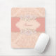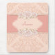 Design bonitinho e giro com faixa central e etiqueta para personalização embelezada com molas florais gravadas sobre um fundo elegante de damasco rosa.