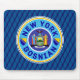 Mousemat Americano Bósnio de Nova Iorque. Design bósnio de Nova Iorque, de cor azul e amarela, com a bandeira estadual de Nova Iorque no centro e a bandeira da Bósnia-Herzegovina nos lados.
