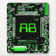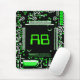 Design moderno com um fechamento de um conselho de circuito de computador em verde, preto e branco e suas iniciais em verde. Mousepad com um design personalizável para você personalizar com seu próprio texto, imagens e ideias. Criado com uma fotografia original e técnicas digitais por Jess Perry.