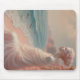 trabalho de arte de fantasia hipnotizante com uma etérea encharcada em tecido fluido, sentada pacificamente numa praia cor-de-rosa macia com ondas suaves e peixes flutuantes no ar. Cercado por flores florescentes e tons pastéis, esta cena costeira surreal irradia serenidade e maravilha. Perfeito para amantes da fantasia, paisagens de sonhos românticos e arte suave surreal — ideal para impressões, decoração de parede e acessórios elegantes.