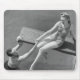 Mulher que senta-se no conselho de mergulho, homem que agarra sua mão (B&W), marcas elevados da vista | George | AssetID: 72131088