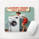 Mousepad Mulher retrô com sinal de ajuda na lavanderia