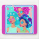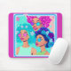 Mulheres de Groovy com Pad de Mouse Flores. O macacão de rato da Groovy vai certamente iluminar o seu dia e qualquer pessoa à sua volta! Meninas de flores icônicas dão uma vibração hippie com flores no cabelo. Mulheres negras africanas exibindo cores vibrantes de azul, rosa, aqua, roxo e amarelo.
