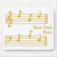 Design único para um Pai que gosta de música - para ouvir ou tocar. Esta design apresenta uma partitura musical com saltos de clave triplos e bass. Há três notas em cada - D, A e D novamente. Um design excelente para um Pai, Pai ou Papa especial para aniversários, Dias de os pais, Natal, ou só porque. Há um texto personalizado que lê "Melhor Pai Nunca", mas pode ser personalizado para qualquer mensagem personalizada que melhor se ajuste. As notas de música são douradas contra uma cor branca.