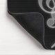 Um mouse pad típico de música simples a preto/branco - trilha branca e grampos contra um fundo preto texturizado. Amor à Música.