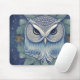 Esta coruja da floresta de fantasia caprichosa é representada como uma criatura mágica e mística, com os seus olhos amarelos piercing e um padrão único de penas. Ela é colocada sobre um fundo de folhagem de inverno e estrelas encantadoras e espumantes entre o céu noturno.