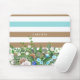 Um na moda aqua e floral bronzeado e listras mousepad que você pode personalizar adicionando o nome de qualquer garota feminina. Este design apresenta rosas bronzeadas e brancas com prigos de aqua bonito e flores azuis do jardim.