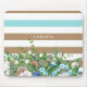 Mousepad Na moda Aqua e Tan Floral e Stripes com Nome