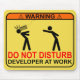 O texto engraçado diz, "ADVERTÊNCIA. NÃO PERTURBE, COLABORADOR NO TRABALHO"
