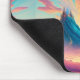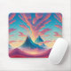 Surpreendente design do Sol Vulcânico Abstrato, que representa um vulcão que irrompeu dramaticamente num nascer do sol, com uma mistura de pastéis e cores vibrantes profundas de rosa, azul, laranja, roxo e vermelho.
