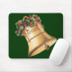 Ilustração Vintage design de Natal Feliz, com um sino de ouro decorado com folhas sagradas e frutas vermelhas. Um corte antigo. Texto: Cartões de natal.