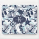 This mouse pad features a fun summer pattern of nautical elements including anchor, seagull, starfish and many more, all in navy blue with swirls and wavy aqua blue accents. Add your name and/or monogram using the provided template. Search ID839 and ID840 to see other products with this design and additional color options.