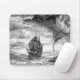 Excelente para a "conversa como um dia do pirata" o 19 de setembro! Uma ilustração do vintage de um navio no mar com um waterspout feroz no horizonte. Sarrafo abaixo dos portais! Resista a toda a tempestade ao obter seu trabalho feito no escritório ou em casa com este tapete do rato.