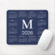 Mousepad Navy Blue and White Monogram 2026 Calendar