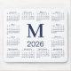 Mousepad Navy Blue Monogram 2026 Calendar on White