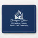 This professional realtor mousepad is custom made with your real estate company name under the modern cursive script for an open house. These chic custom navy blue realty business promotional items feature a house logo image for home builder or realty agent company marketing.