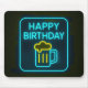 Um sinal de neon vibrante mostra uma mensagem de "Parabéns" com uma caneca brilhante de cerveja