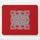 Mouse pad em padrão celta tradicional baseado no nó do marinheiro, feito de duas cordas entrelaçadas simbolizando a mistura de vidas individuais em uma só. O padrão preto é apresentado em branco sobre um fundo vermelho chinês profundo